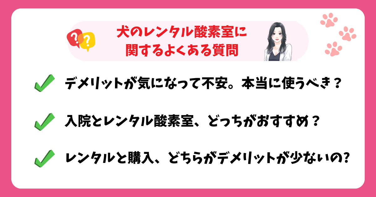 犬の飼い主様私もレンタル酸素室を検討しているけど、デメリットが気になります・・・